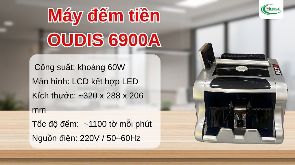 Oudis 6900A là dòng máy tầm trung phù hợp cho doanh nghiệp vừa hoặc cửa hàng có lượng tiền giao dịch tương đối nhiều . Máy vẫn được trang bị tính năng tiền giả nhưng ở mức độ cơ bản hơn so với dòng 9900 . Ưu điểm của dòng máy này là dễ sử dụng , độ ổn định cao và chi phí đầu tư hợp lý . Đây là lựa chọn cân bằng giữa hiệu năng và giá thành