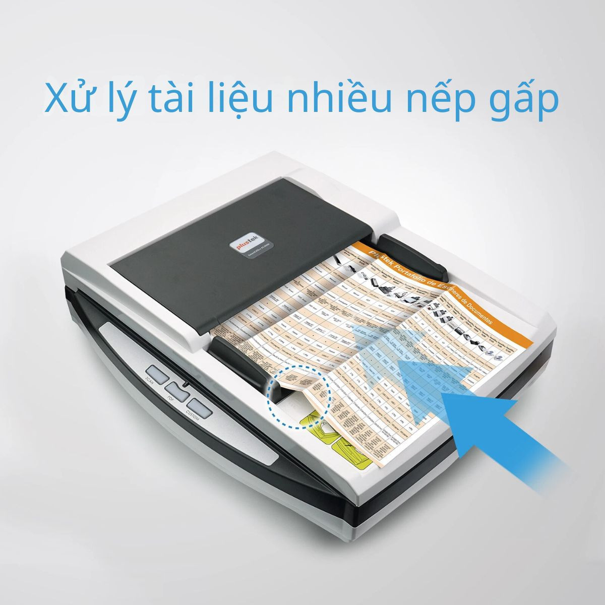 PL4080 được trang bị cả mặt kính phẳng và khay nạp tài liệu tự động ADF, cho phép xử lý đa dạng tài liệu từ giấy rời, sách đến hồ sơ nhiều trang. Thiết kế gọn gàng, chắc chắn giúp dễ dàng bố trí trong mọi không gian văn phòng.
